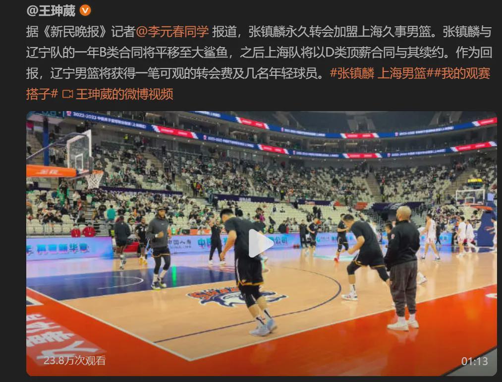 果然,就在CBA的国内球员注册截止日即将到来之前,张镇麟转投上海男篮的事情敲定了。